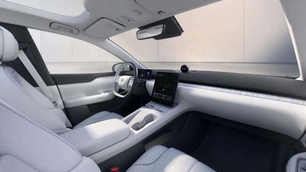 L'habitacle est habillé des désormais incontournables matériaux « éco-chics » dans un style minimaliste très tendance. Tellement minimaliste d'ailleurs qu'on ne trouve même pas de boîte à gants ! Nio pense qu'un éclairage de toutes les couleurs nous le fera oublier. Et, dans le cas contraire, Nomi vous distraira. Nomi ? Un personnage virtuel qui est une bonne partie de l'interface du système multimédia. On peut lui parler et il peut vous regarder, ce qui est malheureusement source de distraction pour le conducteur ! Quant à savoir si l'on est bien installé dans l'ET7 : oui, du moins à l'avant. A l'arrière, la position est un poil trop couchée et les genoux sont relevés. Quant au coffre, il n'épate pas, ni par son volume, ni par son ouverture plutôt étriquée.
