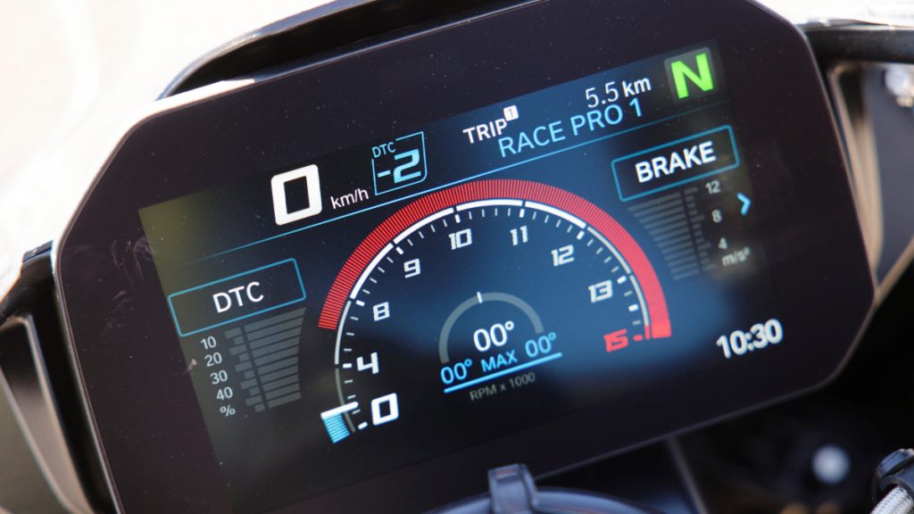 Les autres avantages de ce genre d'engin résident dans sa hauteur de selle de 824 mm ainsi que dans son poids de moins de 200 kg. Ce qui fait de vous, un conducteur à même de bien tenir les rênes de votre moto. Pour autant évidemment que vous maîtrisiez votre poignet droit ! Si vous commencez à essorer la poignée de gaz à outrance, les assistances auront beau faire, vous allez vite, très vite, beaucoup trop vite pour une conduite en ville, voire même en dehors de la ville.