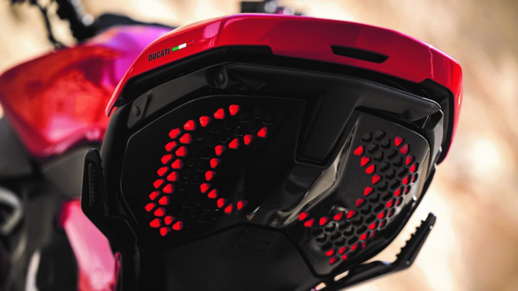 Il serait dommage de résumer la Diavel à son moteur. Car tout le reste est repensé de A à Z, des valves de pneus à l'aiguille du compteur numérique en passant par le châssis. La structure tubulaire de l'ancienne cède sa place à une monocoque semblable à celle des Multistrada et Panigale. Un bon point pour la résistance et la flexibilité, mais aussi pour le poids à sec, en baisse de six kilos rien que sur ce poste. Les sept autres kilos perdus sont gagnés sur le moteur (-5 kg), les roues (-1,5 kg) et l'arrière-cadre. En ordre de marche - mais sans carburant - la Diavel V4 accuse donc 13 kg de moins sur la balance que la Diavel 1 260 S sortante. Et puis, le modèle accueille les derniers gadgets EVO en matière d'électronique, de motricité, du launch control, d'antiwheeling et d'ABS en virage.