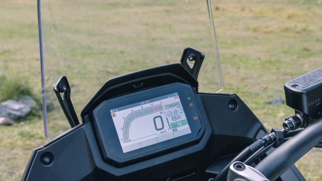 Les pieds bien au sol, le guidon placé correctement pour une position « relax », il ne reste qu'à lancer le démarreur pour que l'échappement laisse filtrer une sonorité « bien comme il faut ». Autrement dit, ni trop ni trop peu comme l'exigent (malheureusement ?) les réglementations actuelles. Seul le levier de frein est réglable. Sur la gauche, le commodo offre plusieurs choix avec, notamment, cinq modes de conduite. Le paramétrage des fonctions demandera un certain temps d'adaptation. Pourquoi faire simple quand on peut faire compliqué en y ajoutant ce « damné » joystick ? Heureusement, l'ensemble est malgré tout plus intuitif que sur l'Africa Twin.