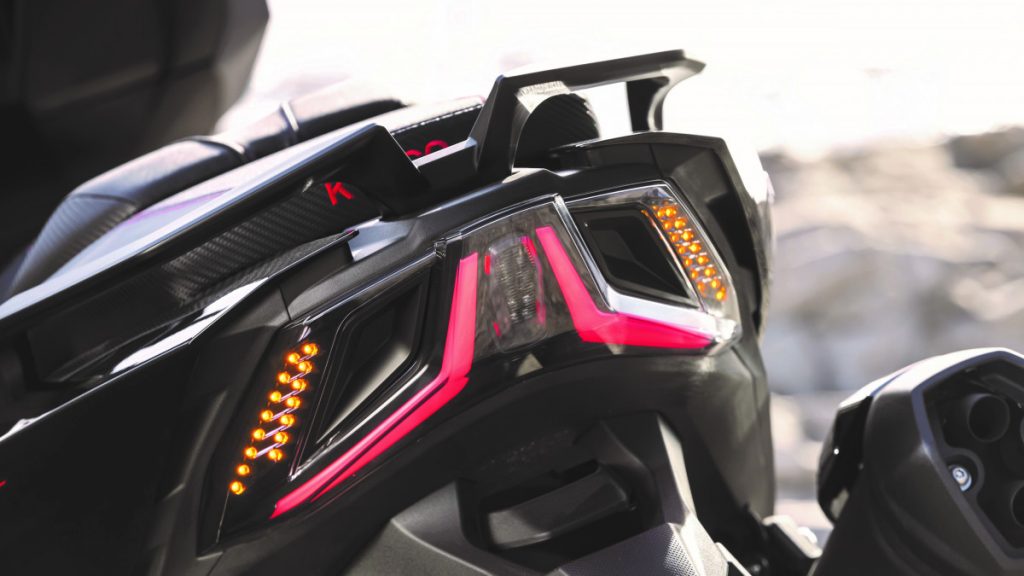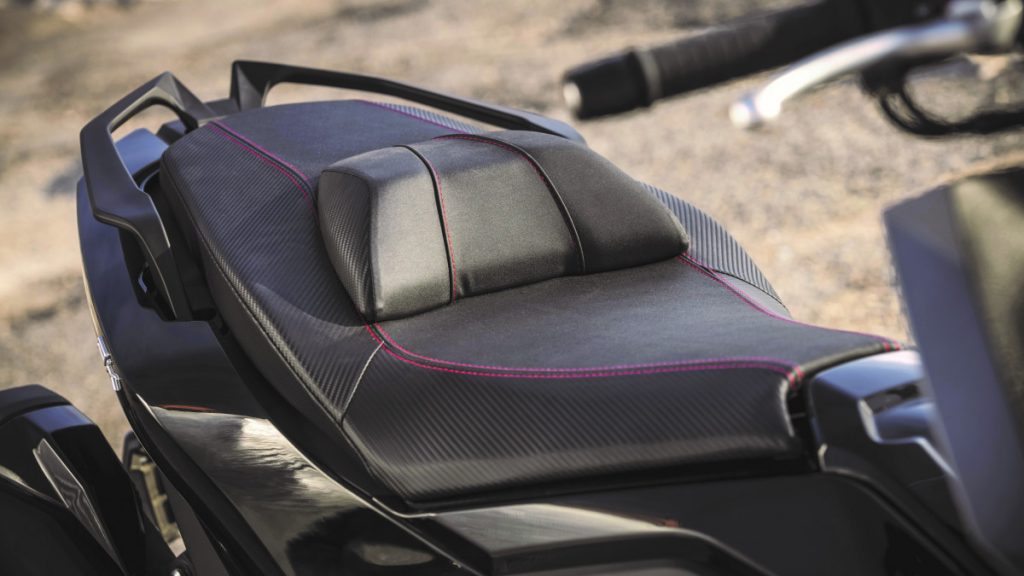 On apprécie la présence de poignées chauffantes réglables sur trois niveaux, d'un régulateur de vitesse activable entre 45 et 130 km/h par paliers de 2 km/h et associé à une commande électronique d'accélération ETC (Electronic Throttle Control). La bulle est réglable électriquement sur une course de 8,5 cm. Le coffre sous la selle renferme un espace assez généreux qui peut contenir aisément un casque intégral et d'autres petites affaires.