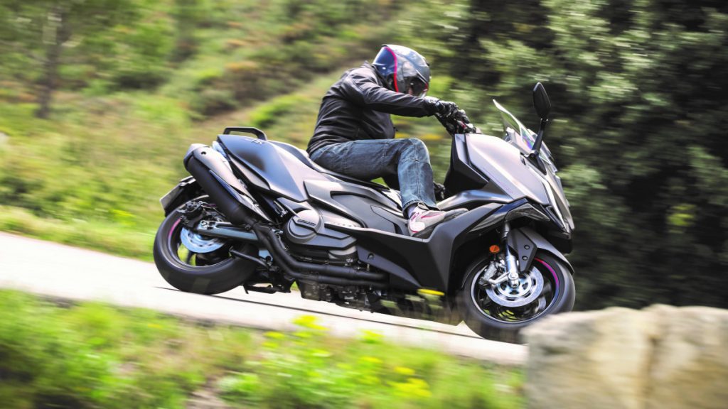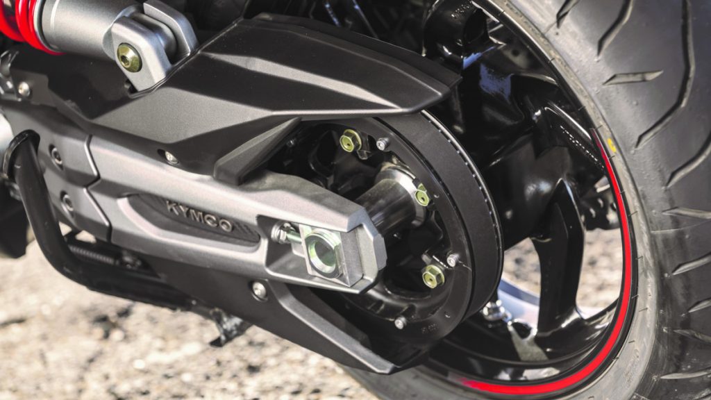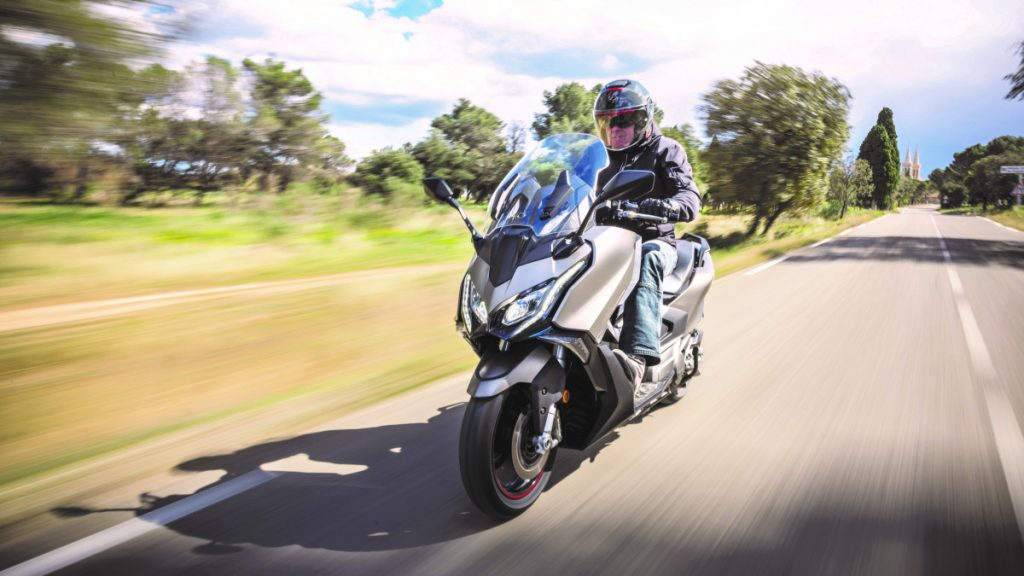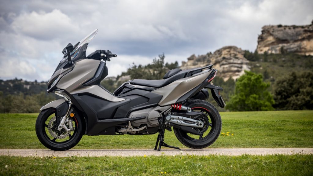 Question moteur, le Kymco AK Premium s'ébroue toujours grâce au bicylindre de 550 cm3 à 8 soupapes, développant 51 ch (47 ch pour les permis A2) et 52,3 Nm à 5 750 tr/min. Il se voit pourvu d'une double cartographie avec, soit le mode normal, soit le mode pluie limitant la puissance à 38 ch. Un système antipatinage désactivable est prévu pour garantir l'adhérence de la roue arrière.