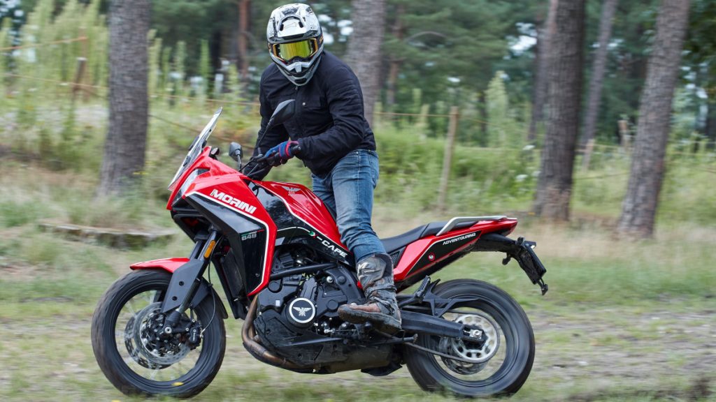 La puissance de 60 chevaux est disponible dans presque toutes les conditions. L'arrivée rapide et précoce du couple (56 Nm) rend la X-Cape très facile à piloter. La réponse de l'accélérateur est remarquablement douce. Cela met en confiance et permet de vous familiariser très rapidement avec cette Morini. De plus, les réglages standards des ressorts de suspension sont bons et la position de conduite détendue. La fourche de 50 mm est entièrement réglable. J'ai utilisé le mode tout-terrain qui permet de désactiver l'ABS. Une obligation car, lors de ce test sur le site « Honda Park » d'Olmen et ses environs, la X-Cape a vraiment été mise à l'épreuve. En position debout pour une utilisation off-road, vous sentez que Morini a construit une moto très finement équilibrée, apportant à son pilote un bon contrôle de la machine même en tous chemins.